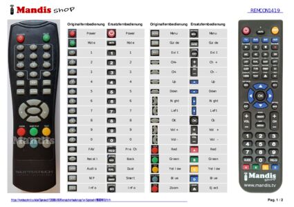 Ein Dokument ist enthalten, um die Verwendung der neuen Fernbedienung zu erleichtern, indem es die Tastenbelegung zeigt.