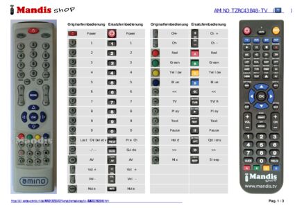 Home > Marken > Fernbedienungen AMINO > Fernbedienung für AMINO TZRC43B48 > Interaktive Tastenbelegung AMINO TZRC43B48
