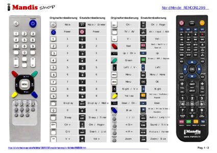 Ein Dokument ist enthalten, um die Verwendung der neuen Fernbedienung zu erleichtern, indem es die Tastenbelegung zeigt.