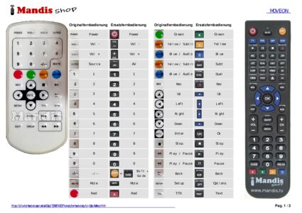 Ein Dokument ist enthalten, um die Verwendung der neuen Fernbedienung zu erleichtern, indem es die Tastenbelegung zeigt.