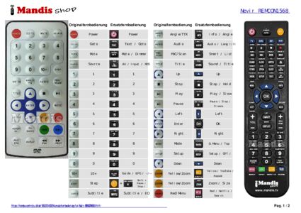 Ein Dokument ist enthalten, um die Verwendung der neuen Fernbedienung zu erleichtern, indem es die Tastenbelegung zeigt.