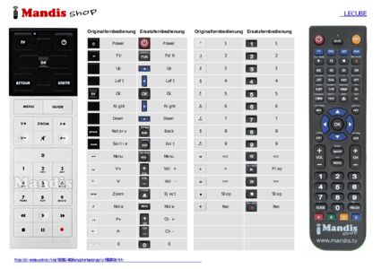 Ein Dokument ist enthalten, um die Verwendung der neuen Fernbedienung zu erleichtern, indem es die Tastenbelegung zeigt.