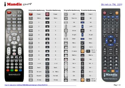 Ein Dokument ist enthalten, um die Verwendung der neuen Fernbedienung zu erleichtern, indem es die Tastenbelegung zeigt.