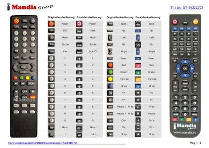 Home > Marken > Fernbedienungen Triax > Fernbedienung für Triax ST-HD 527 CI > Interaktive Tastenbelegung Triax ST-HD 527 CI
