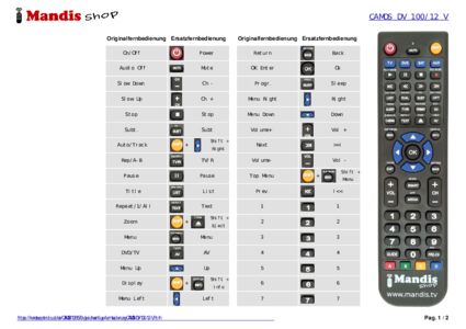 Home > Marken > Fernbedienungen CAMOS > Fernbedienung für CAMOS DV 100 / 12 V > Interaktive Tastenbelegung CAMOS DV 100 / 12 V