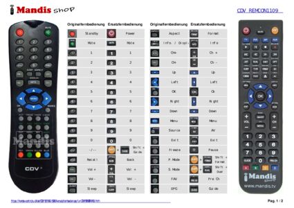 Home > Marken > Fernbedienungen CDV > Fernbedienung für CDV REMCON1109 > Interaktive Tastenbelegung CDV REMCON1109