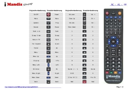 Ein Dokument ist enthalten, um die Verwendung der neuen Fernbedienung zu erleichtern, indem es die Tastenbelegung zeigt.