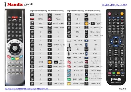 Diese Fernbedienung ersetzt Ihre Open Vu 5 in vollem Umfang und bietet alle Funktionen des Originals.