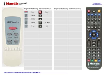 Diese Fernbedienung erfüllt alle Funktionen der Originalfernbedienung: