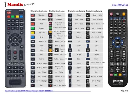 Ein Dokument ist enthalten, um die Verwendung der neuen Fernbedienung zu erleichtern, indem es die Tastenbelegung zeigt.