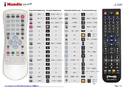 Ein Dokument ist enthalten, um die Verwendung der neuen Fernbedienung zu erleichtern, indem es die Tastenbelegung zeigt.