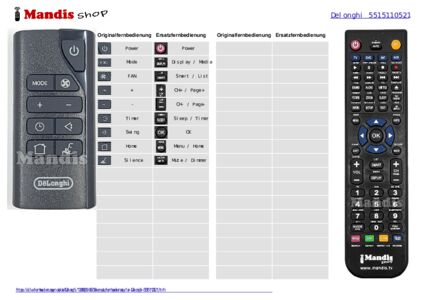Home > Marken > Fernbedienungen Delonghi > Fernbedienung für Delonghi 5515110521 > Interaktive Tastenbelegung Delonghi 5515110521