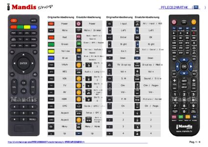 Ein Dokument ist enthalten, um die Verwendung der neuen Fernbedienung zu erleichtern, indem es die Tastenbelegung zeigt.