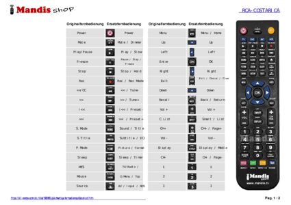 Home > Marken > Fernbedienung für Costarica1 > Interaktive Tastenbelegung Costarica1