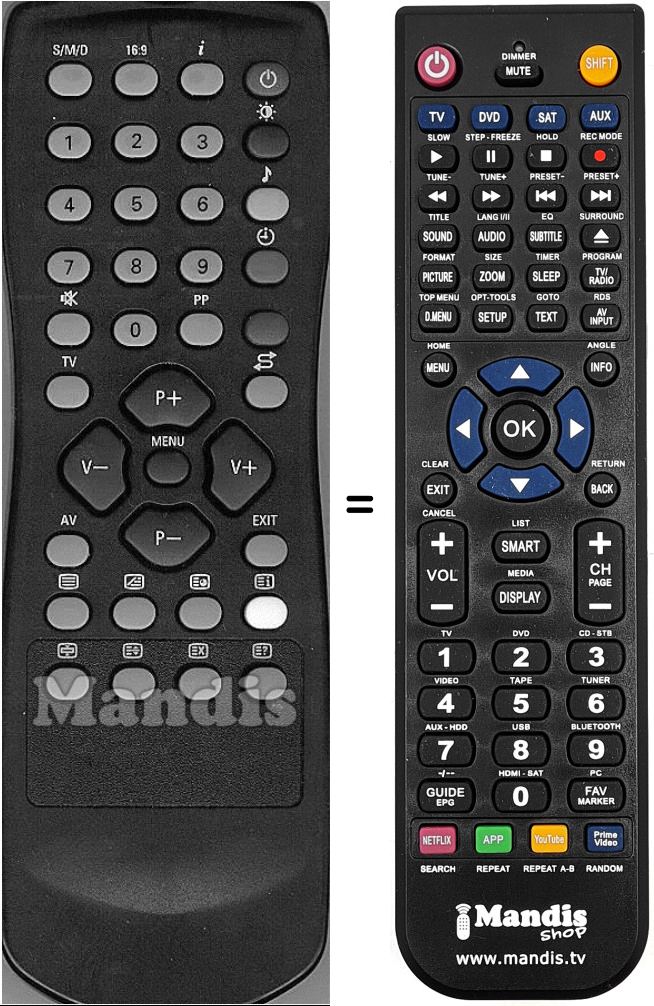 Fernbedienung, die das Original und die Gesamtheit seiner Funktionen, vollständig ersetzt. Es handelt sich jedoch nicht um eine Universalfernbedienung sondern um eine Fernbedienung die das Original ersetzt. Sie erhalten eine nach Einlegen der Batterien sofort einsatzbereite Fernbedienung. Jegliches Programmieren entfällt. Wir geben umfassende Garantie dafür, dass diese Fernbedienung alle Funktionen der Originalfernbedienung erfüllt.