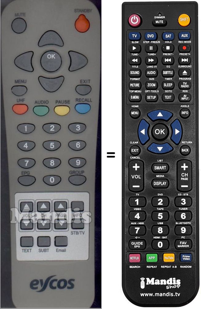 Fernbedienung, die das Original und die Gesamtheit seiner Funktionen, vollständig ersetzt. Es handelt sich jedoch nicht um eine Universalfernbedienung sondern um eine Fernbedienung die das Original ersetzt. Sie erhalten eine nach Einlegen der Batterien sofort einsatzbereite Fernbedienung. Jegliches Programmieren entfällt. Wir geben umfassende Garantie dafür, dass diese Fernbedienung alle Funktionen der Originalfernbedienung erfüllt.