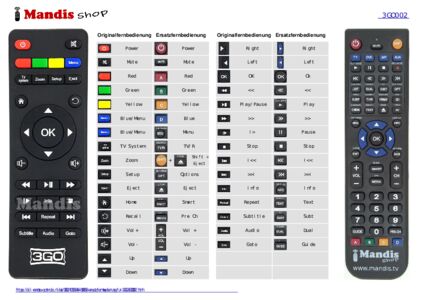 Ein Dokument ist enthalten, um die Verwendung der neuen Fernbedienung zu erleichtern, indem es die Tastenbelegung zeigt.
