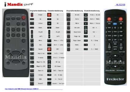 Die original Fernbedienung meines Panasonic Beamers war unreperabl defekt. Ein Ersatz war nirgends zu finden. Zum Glück entdeckte ich Mandis und bestellte die Ersatzfernbedienung nach der Originalnummer. Die nach kurzer Lieferzeit eingelangte Ersatzfernbedienung erfüllt alle, für den Betrieb wesentlichen Funktionen und es gibt dafür eine perfekte Anleitung.Das umständliche Einstellen von Schärfe, Zoom, Menue usw. direkt am Beamer geht jetzt wieder per Fernbedienung. Danke Mandis!!