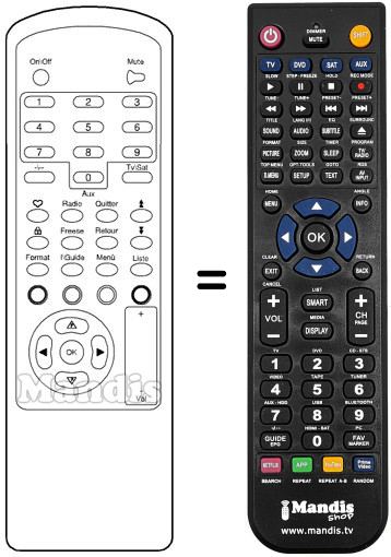 Fernbedienung, die das Original und die Gesamtheit seiner Funktionen, vollständig ersetzt.