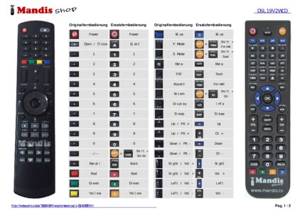 Ein Dokument ist enthalten, um die Verwendung der neuen Fernbedienung zu erleichtern, indem es die Tastenbelegung zeigt.