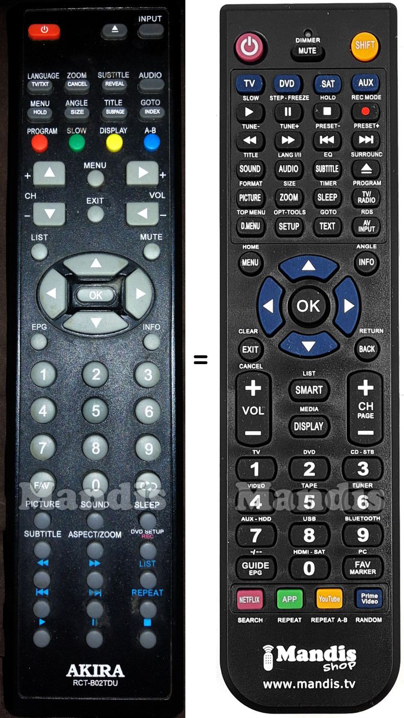 Home > Marken > Fernbedienungen AKIRA > Fernbedienung für AKIRA RCT-B02TDU