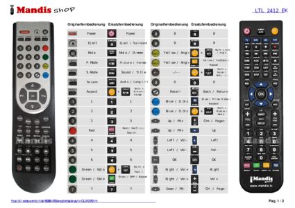 Ein Dokument ist enthalten, um die Verwendung der neuen Fernbedienung zu erleichtern, indem es die Tastenbelegung zeigt.