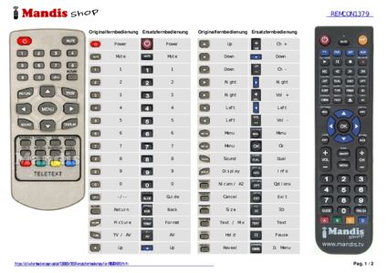 Ein Dokument ist enthalten, um die Verwendung der neuen Fernbedienung zu erleichtern, indem es die Tastenbelegung zeigt.