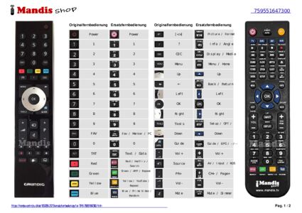 Ein Dokument ist enthalten, um die Verwendung der neuen Fernbedienung zu erleichtern, indem es die Tastenbelegung zeigt.
