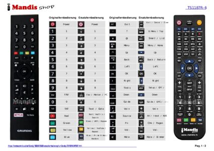Ein Dokument ist enthalten, um die Verwendung der neuen Fernbedienung zu erleichtern, indem es die Tastenbelegung zeigt.