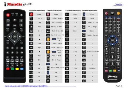 Ein Dokument ist enthalten, um die Verwendung der neuen Fernbedienung zu erleichtern, indem es die Tastenbelegung zeigt.