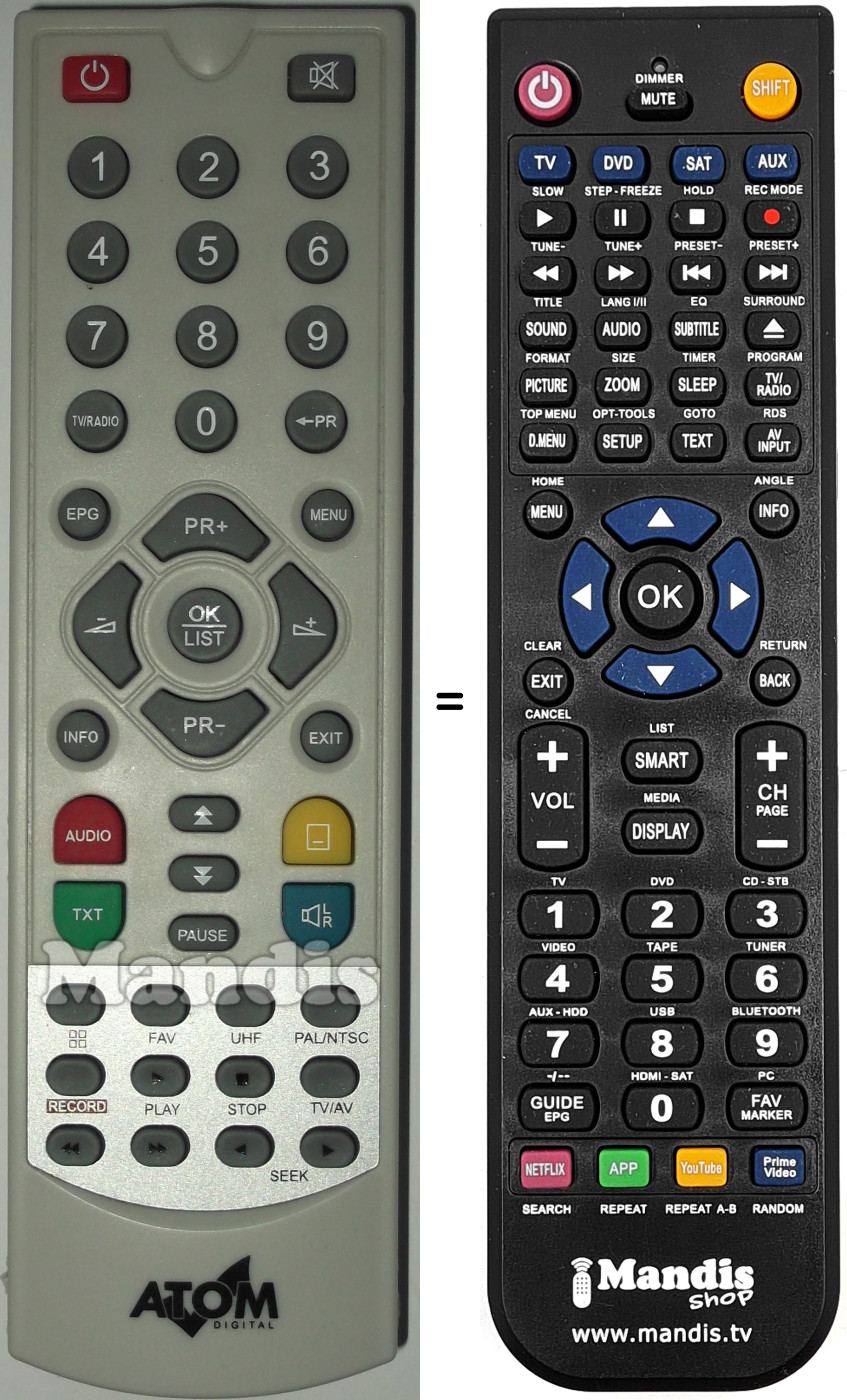 Es handelt sich jedoch nicht um eine Universalfernbedienung sondern um eine Fernbedienung die das Original ersetzt.
