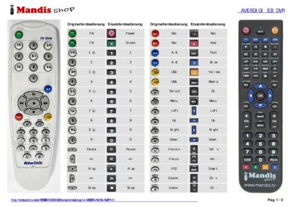Diese Fernbedienung ersetzt Ihre AVerDiGi (RM-JP) in vollem Umfang und bietet alle Funktionen des Originals.