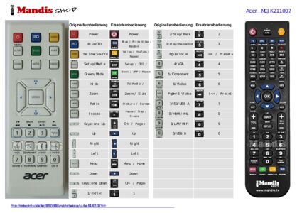 Ein Dokument ist enthalten, um die Verwendung der neuen Fernbedienung zu erleichtern, indem es die Tastenbelegung zeigt.