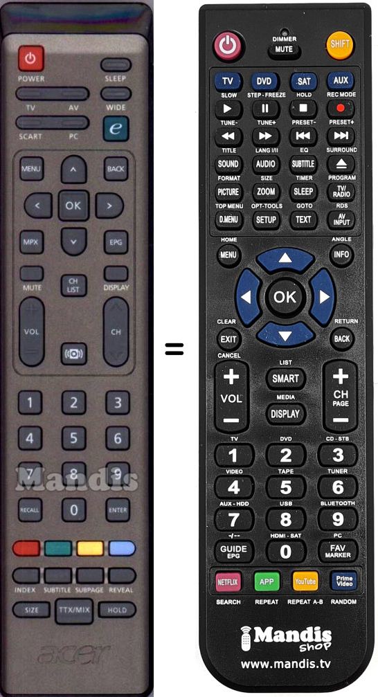 Es handelt sich jedoch nicht um eine Universalfernbedienung sondern um eine Fernbedienung die das Original ersetzt.