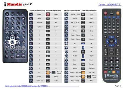 Ein Dokument ist enthalten, um die Verwendung der neuen Fernbedienung zu erleichtern, indem es die Tastenbelegung zeigt.