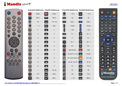 Ein Dokument ist enthalten, um die Verwendung der neuen Fernbedienung zu erleichtern, indem es die Tastenbelegung zeigt.