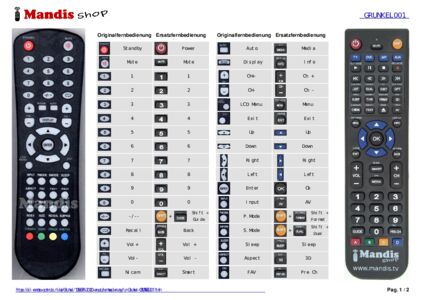Ein Dokument ist enthalten, um die Verwendung der neuen Fernbedienung zu erleichtern, indem es die Tastenbelegung zeigt.