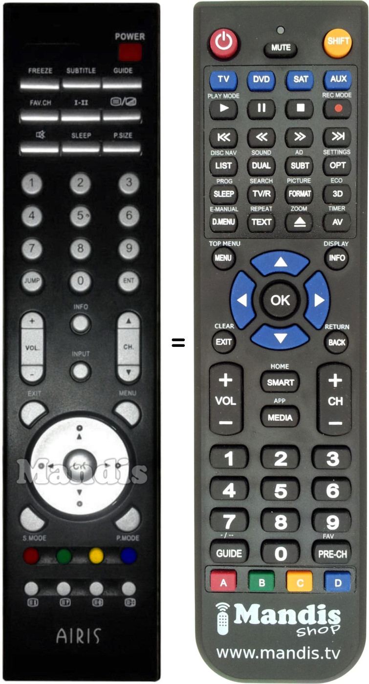 Diese Fernbedienung ersetzt Ihre Airis003 in vollem Umfang und bietet alle Funktionen des Originals.