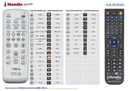 Diese Fernbedienung ersetzt Ihre RMZ20051 (147852011) in vollem Umfang und bietet alle Funktionen des Originals.