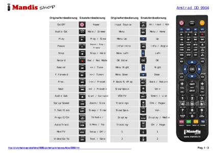 Ein Dokument ist enthalten, um die Verwendung der neuen Fernbedienung zu erleichtern, indem es die Tastenbelegung zeigt.