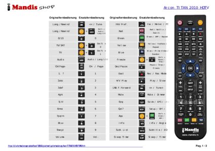 Ein Dokument ist enthalten, um die Verwendung der neuen Fernbedienung zu erleichtern, indem es die Tastenbelegung zeigt.