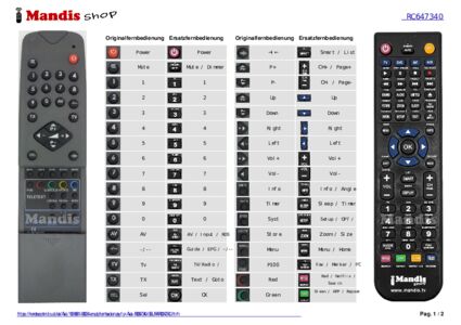 Ein Dokument ist enthalten, um die Verwendung der neuen Fernbedienung zu erleichtern, indem es die Tastenbelegung zeigt.