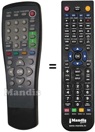 Fernbedienung, die das Original und die Gesamtheit seiner Funktionen, vollständig ersetzt.
