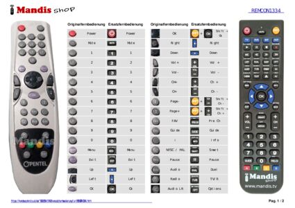 Ein Dokument ist enthalten, um die Verwendung der neuen Fernbedienung zu erleichtern, indem es die Tastenbelegung zeigt.
