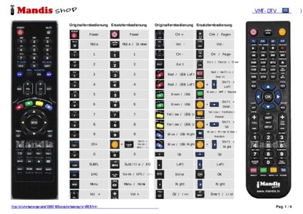 Ein Dokument ist enthalten, um die Verwendung der neuen Fernbedienung zu erleichtern, indem es die Tastenbelegung zeigt.
