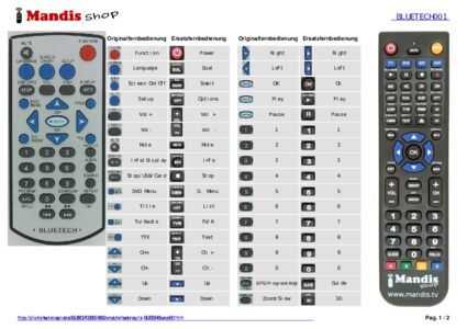 Ein Dokument ist enthalten, um die Verwendung der neuen Fernbedienung zu erleichtern, indem es die Tastenbelegung zeigt.