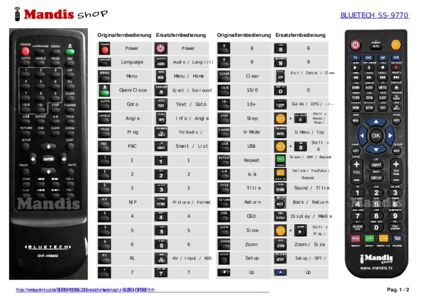 Ein Dokument ist enthalten, um die Verwendung der neuen Fernbedienung zu erleichtern, indem es die Tastenbelegung zeigt.