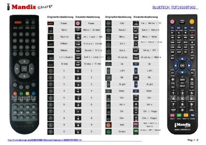 Fernbedienung für BLUETECH TQT 1910 BT 002