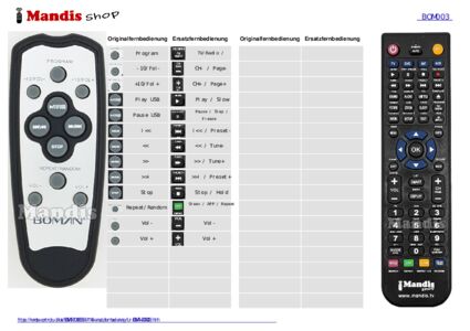Im Folgenden zeigen wir Ihnen die Zuordnung jedes einzelnen Knopfes der Originalfernbedienung zu der Taste, die dieselbe Funktion auf der Ersatzfernbedienung ausführt. In einigen Fällen müssen Sie möglicherweise die UMSCHALT-Taste drücken, bevor Sie eine andere Taste drücken, um bestimmte Aktionen auszuführen. Diese zusätzlichen Funktionen werden oft wenig genutzt und dienen dazu, das Verständnis der Ersatzfernbedienung zu erleichtern oder weil die Originalfernbedienung mehr Tasten hat als das entsprechende Modell.