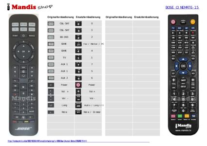 Diese Fernbedienung ersetzt Ihre Bose Universal Remote (CINEMATE-15) in vollem Umfang und bietet alle Funktionen des Originals.